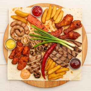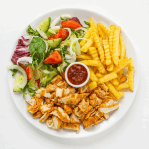 1 Lammkotelett 1 puttenbrust 1 hausgemachte firkadelle dönerfleisch mit salat, Pommes oder Reis