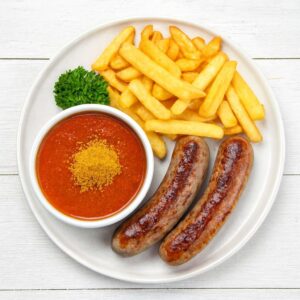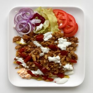Pommes und döner kebap, mit kalb geflügelfleisch