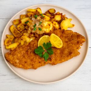 hausgemachte Frikadellen, salat, pommes oder Reis
